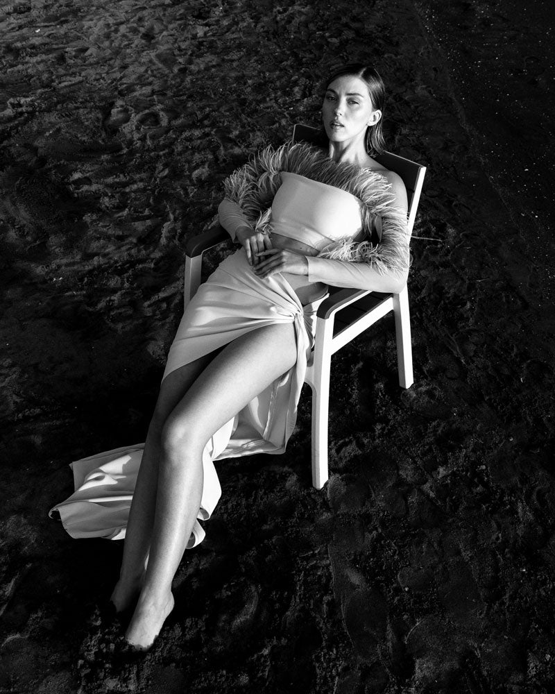 Gonna lunga realizzata in pura georgette di seta. Con nodo sul davanti e spacco laterale.